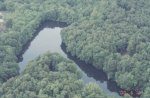 About 25 minutes into the flight, we start looking seriously at Panthorn Park for landing. We have a nice track for the park and it's familiar to us as it's a regular launch site for some of our balloon club members. Here we cross La Course Pond just at the north end of the park. We track to the right of both of the main fields of the park, instead approaching over some stands of pine trees to land on the access road to the park, since the winds on the surface are a gentle 2kt. As the basket brushes through the tips of the highest trees, Santo picks a piece of the topmost branch and hands it to Michele as a souvenir. We land on the grass on the near side of the road, and allow the basket to skip and slide a little until it comes to rest in the middle of the road. |