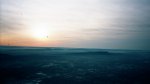 We start a slow climb so we can assess the wind at various altitudes. After an initial drift toward the south, we pick up a predominantly northwest direction. The other balloons have climbed more rapidly and are heading in the opposite direction, so we start up there, too, but still at a moderate rate. Al, still sitting in the car at Spring St., wonders on the radio if we're waiting for him!!! I tell him to sit tight for now. Then Santo comes on the radio and offers me $1 if I land back at Spring St. I start to keep that option in mind while planning the remainder of the flight. In the first shot, we see the other balloons in the distance, silhouetted against Meriden Mountain. The other picture is the view toward the northeast, where the city of Hartford can be seen in the distance. |
