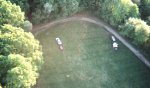 Looking back at the field after take-off, we view the unholy alliance of the red trailer and the little white car that could! |